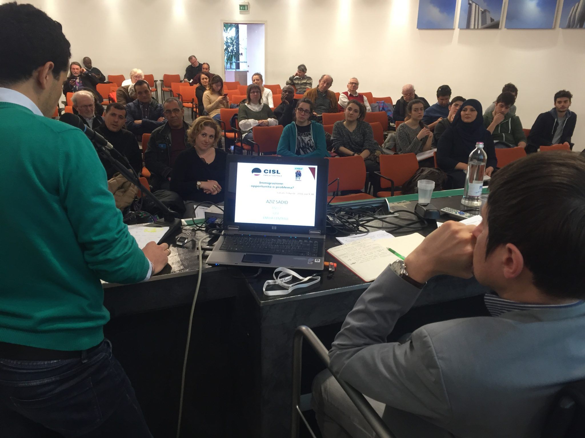 L’intervento di Sadid Aziz a fianco di William Ballotta, segretario generale Cisl Emilia Centrale